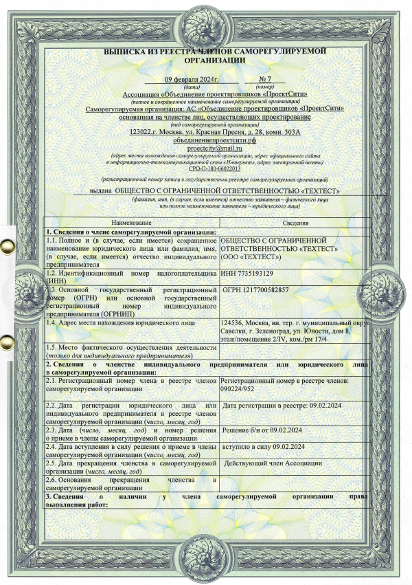 ВЫПИСКА ИЗ РЕЕСТРА ЧЛЕНОВ САМОРЕГУЛИРУЕМОЙ ОРГАНИЗАЦИИ
