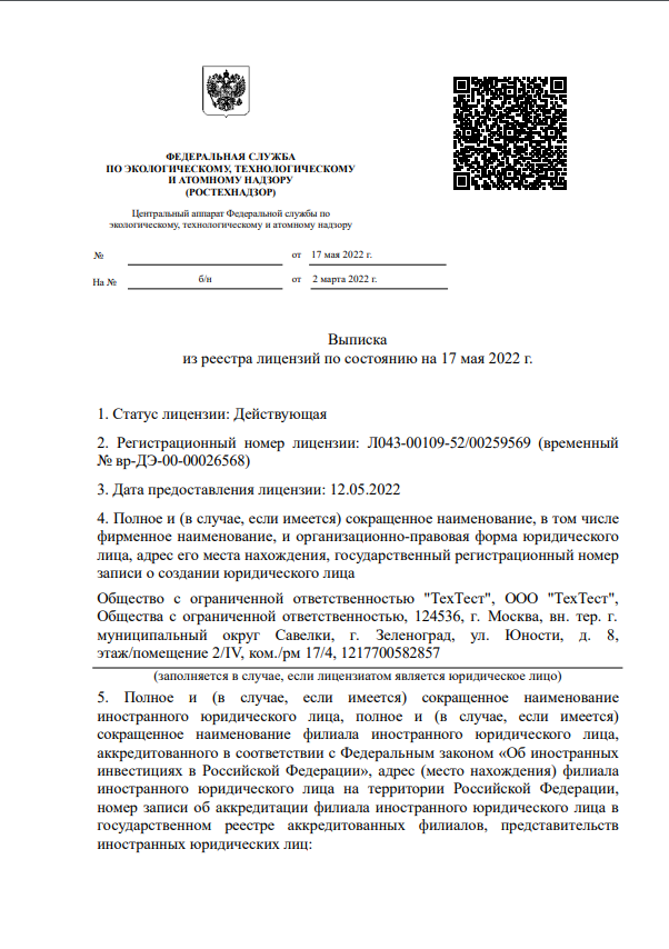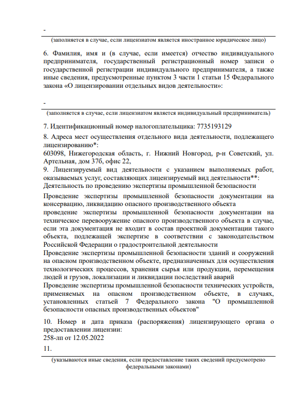 ЛИЦЕНЗИЯ ФЕДЕРАЛЬНОЙ СЛУЖБЫ ПО ТЕХНОЛОГИЧЕСКОМУ, ЭКОЛОГИЧЕСКОМУ И АТОМНОМУ НАДЗОРУ НА ОСУЩЕСТВЛЕНИЕ ДЕЯТЕЛЬНОСТИ ПО ЭКСПЕРТИЗЕ ПРОМЫШЛЕННОЙ БЕЗОПАСНОСТИ